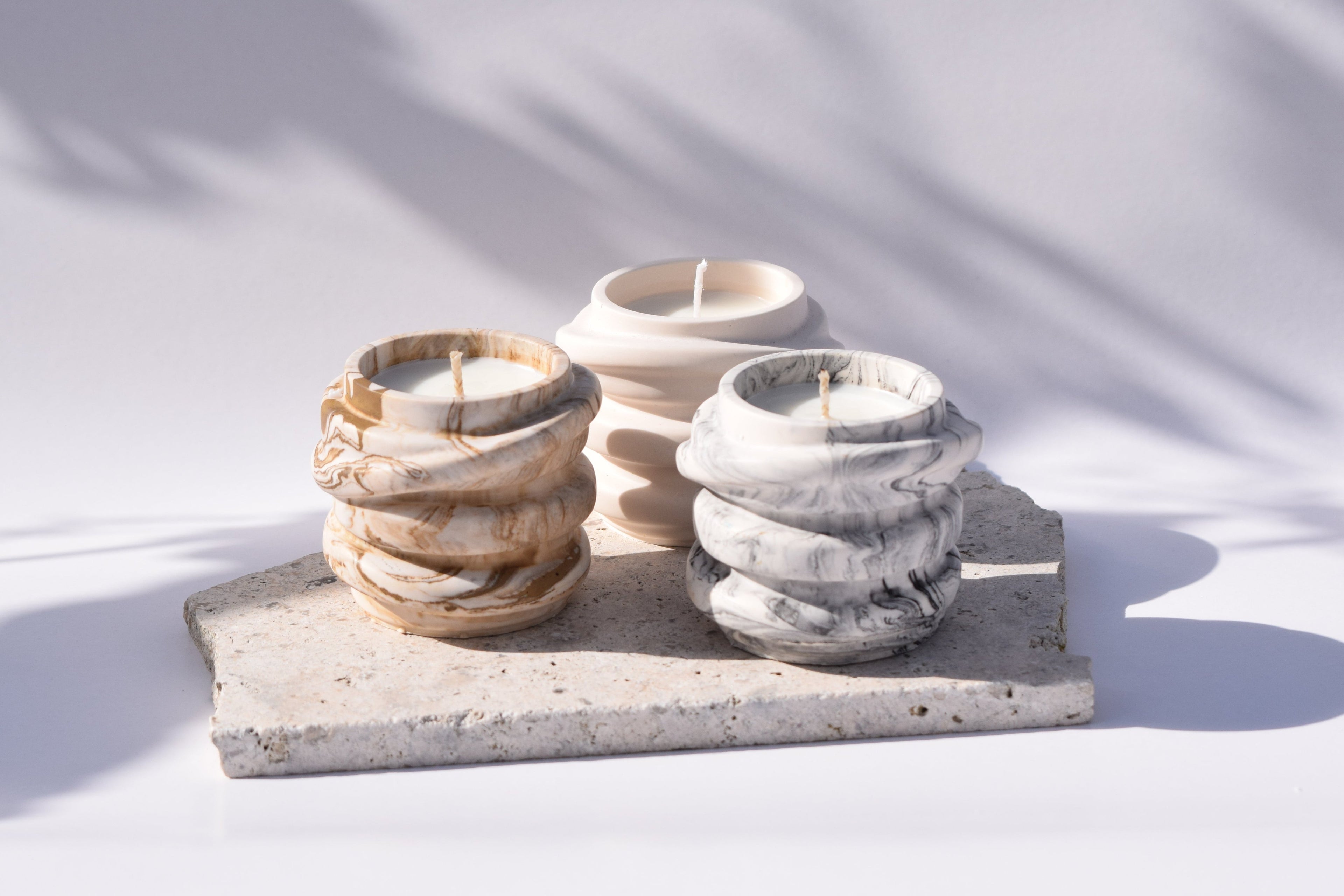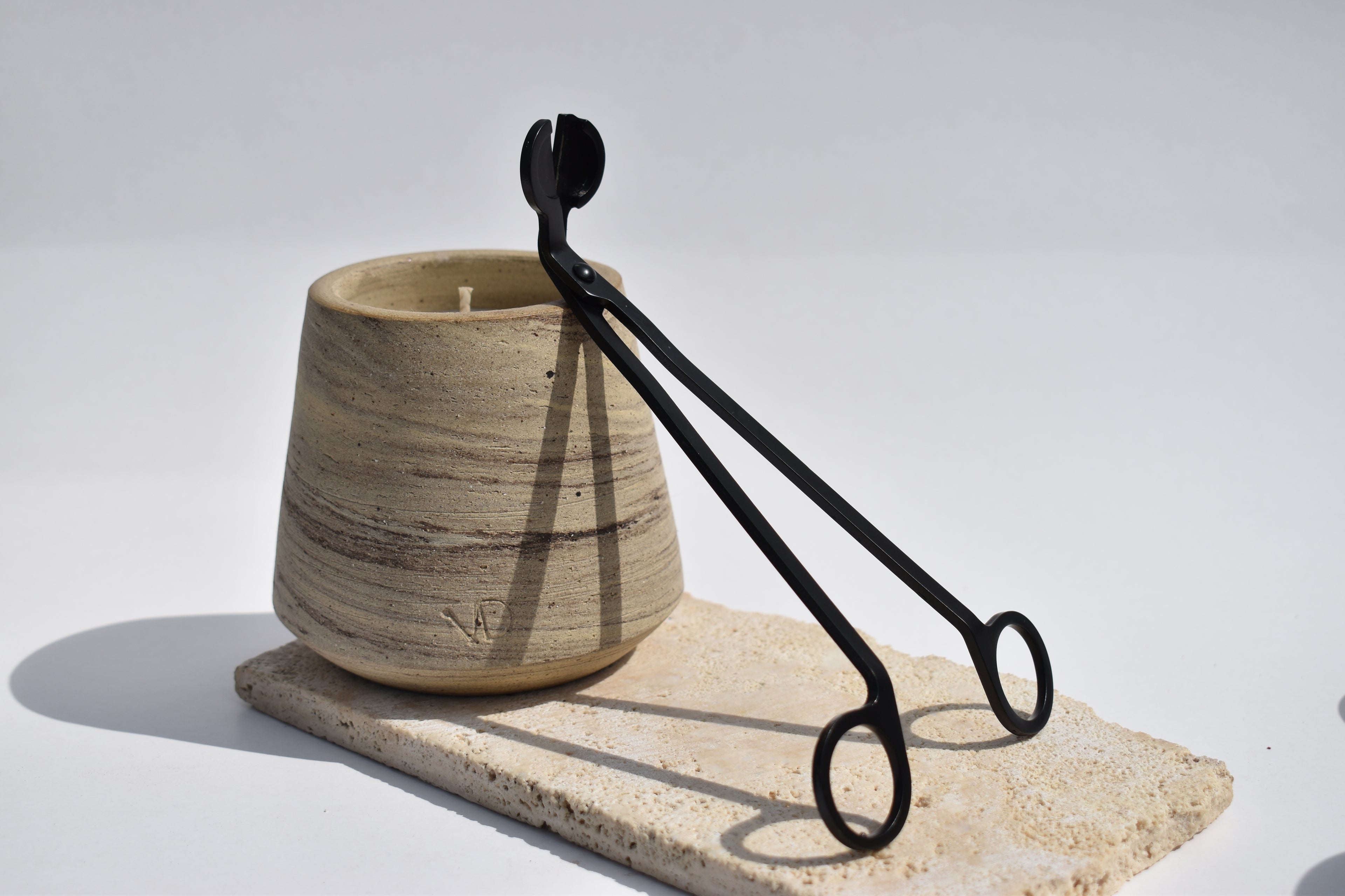 Attachée à l’authenticité, je collabore avec deux artisans céramistes belges pour proposer des contenants uniques, façonnés à la main, un à un. Ici, pas de production en série : chaque bougie est différente, pensée comme une pièce singulière et à l’image de la personne qui la choisira.
