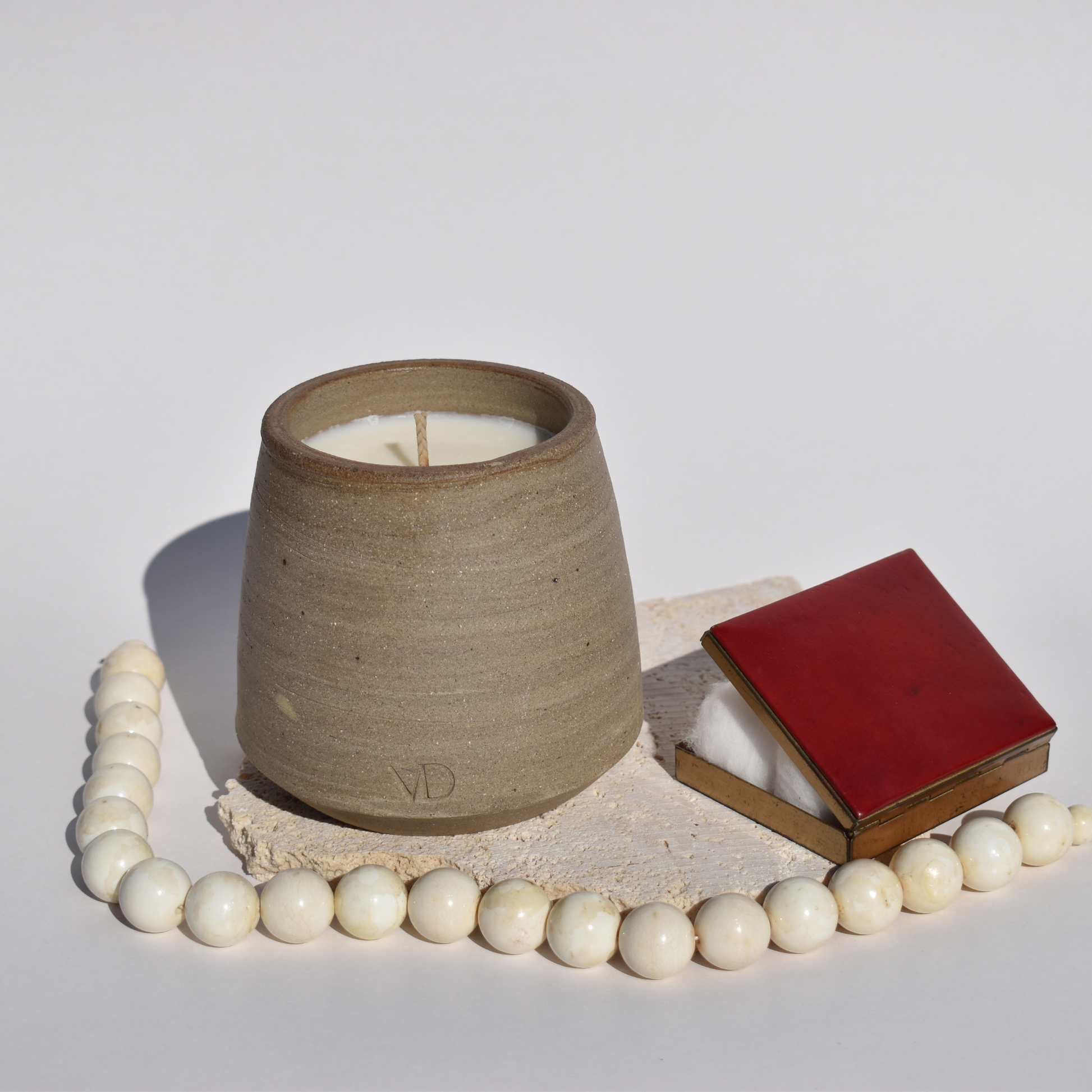 Attachée à l’authenticité, je collabore avec deux artisans céramistes belges pour proposer des contenants uniques, façonnés à la main, un à un. Ici, pas de production en série : chaque bougie est différente, pensée comme une pièce singulière et à l’image de la personne qui la choisira.